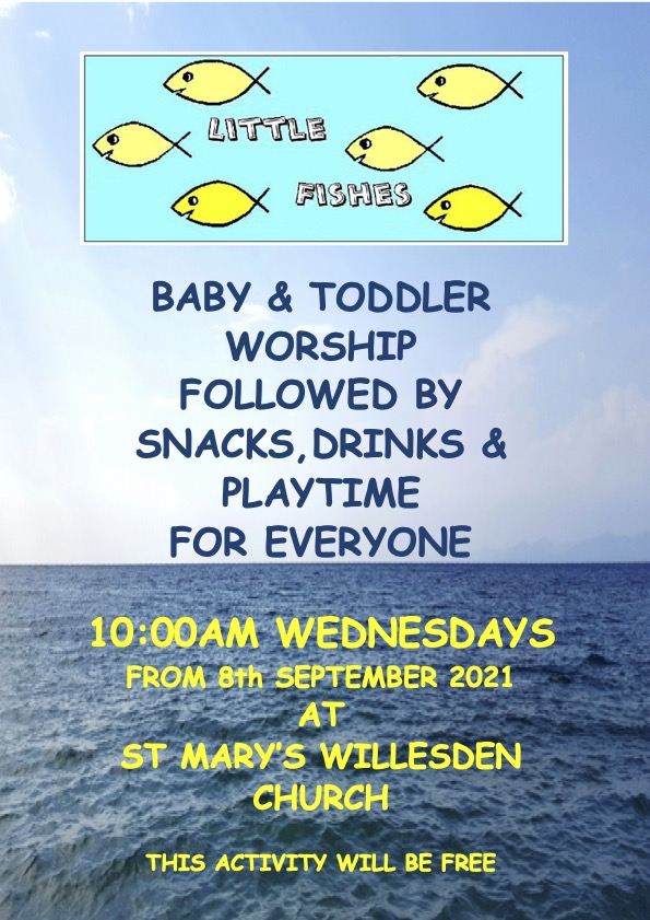 On Wednesday 8th September, appropriately the Feast of the Nativity of Our Lady, we’ll be holding our first weekly session of “Little Fishes”. This is a group for younger (pre-school) children and their parents / carers to gather for a short time of informal worship, followed by playtime and juice / coffee and snacks. We’re really grateful to the Brent Food Bank for their support of this initiative.